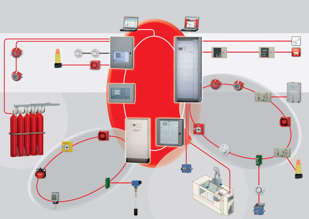 Advanced fire alarm panels, smoke detectors, and notification devices to rapidly detect and alert.